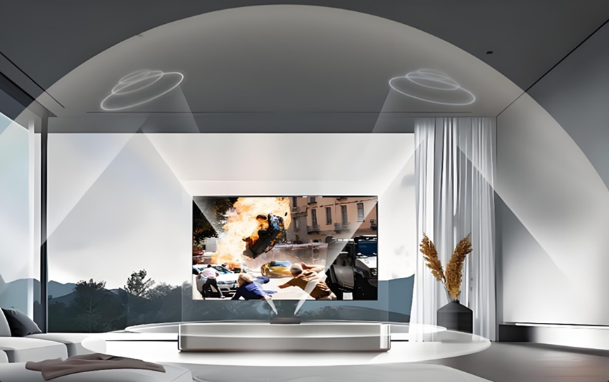 既然视觉上要全面靠拢影院效果,音效也必须有相匹配的表现才行。好的激光电视在声道设计和解码技术方面可以做到“多效合一”,不仅可以省下购买外设音响的费用,还能凭“一机之力”全方位营造出工业电影院的沉浸感。