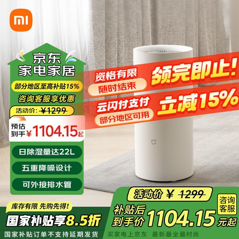 小米智能除湿机22L家用CSJ0122DM,高效除湿+WiFi控制,梅雨季必备