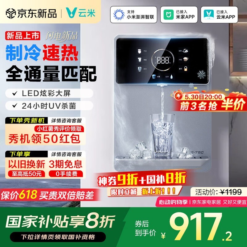 云米AI冷热管线机Super2E限时优惠917元