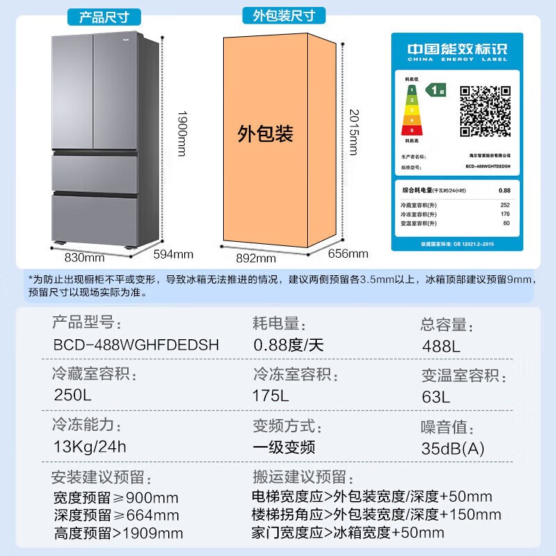 海尔488升法式四门冰箱 京东优惠价2391元