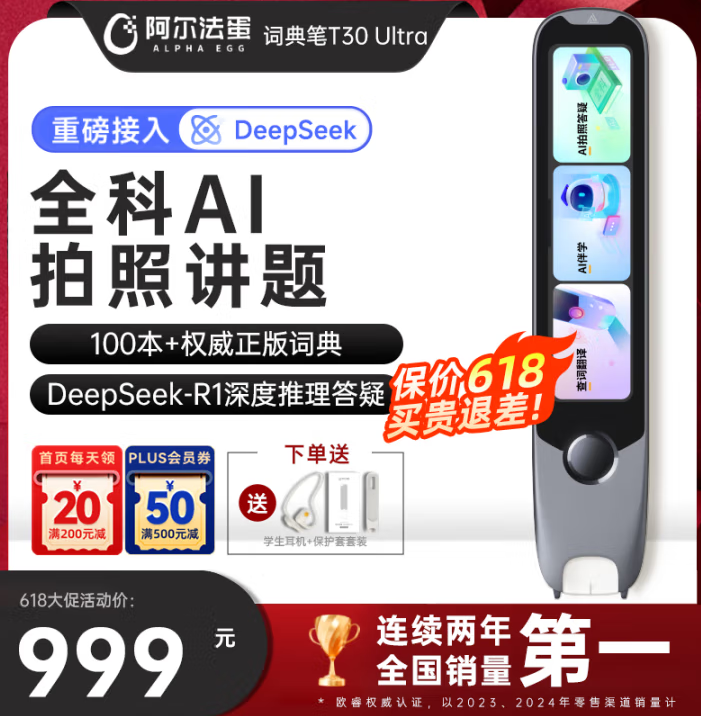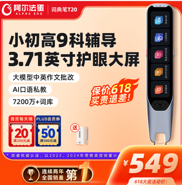 在“千帆竞渡,百舸争流”的智能学习硬件浪潮中,连续两年全国销量第一的阿尔法蛋词典笔再次燃爆618,半价、免单疯狂刷屏,让家长们开启了拼手速!
