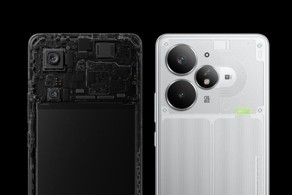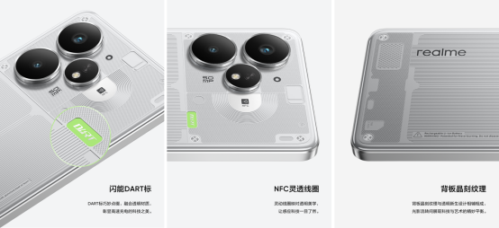 真我Neo7 Turbo打破行业同质化设计,以“透明新生”理念打造视觉革命。激光精雕工艺将NFC线圈、闪能DART标等功能元件转化为设计元素,1:1还原的内部精密排布透过透明背板清晰可见。晶刻纹理与撞色标识在光影中交织,既呈现硅碳负极电池的科技美感,又以透明灰/透明黑双色方案致敬性能美学——透明灰复刻初代Turbo跑车的机械质感,透明黑则以深邃底色衬托元器件的精密秩序。