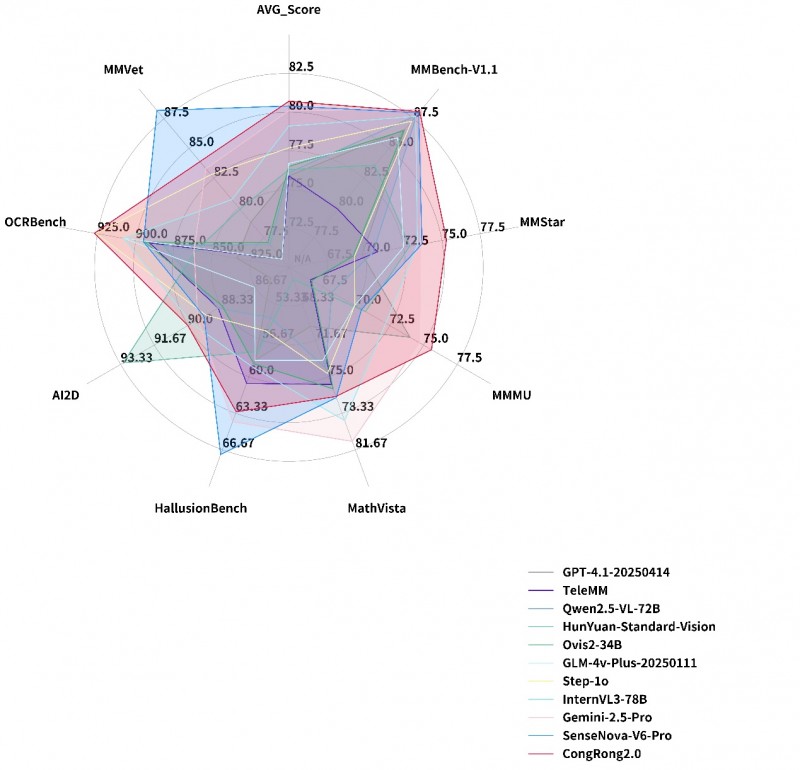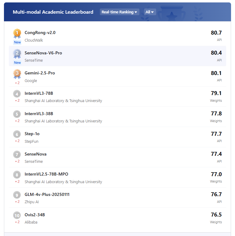 这一成绩不仅刷新了国内AI模型在国际多模态测评中的最高得分纪录,更超越谷歌、OpenAI等全球顶尖团队,与商汤科技SenseNova(80.4分)、上海AI LAB InternVL(79.1分)占据前10名的半壁江山,展现了中国在通用人工智能领域的突破性进展。