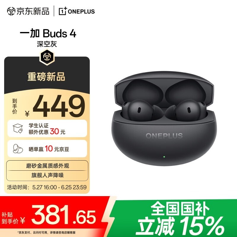 一加Buds 4真无线降噪耳机限时特惠328元