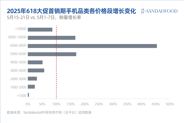 6000–8000元区间实现高速增长,涨幅高达454%;