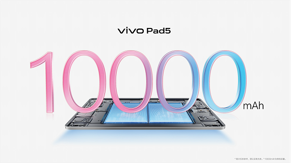 为满足用户对持久享受高能体验的诉求,vivo Pad5 带来 10000mAh 长续航,在“系统轻量化”和“智能保电机制”这两大节流技术的辅助下,可实现 8.5 小时会议通话或者 10 小时在线观影,也能做到待机 62 天或者 1000 天超长保电,轻松应对长时间不插电的使用需求,为真旗舰性能提供有力支撑。