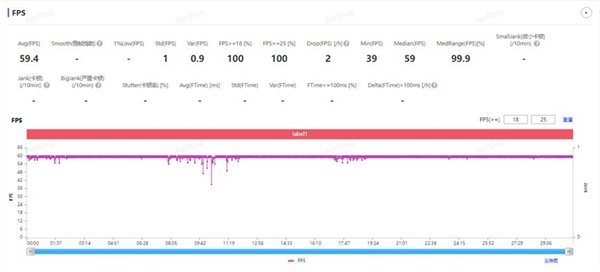 接下来我们进入游戏实测环节,《原神》设置为极高画质+60帧,小米15S Pro游戏内开启性能模式,须弥区域跑图30分钟,平均帧率可以达到59.8,接近满帧。