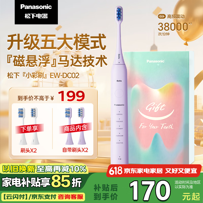 松下电动牙刷EW-DC02-V限时特惠115元