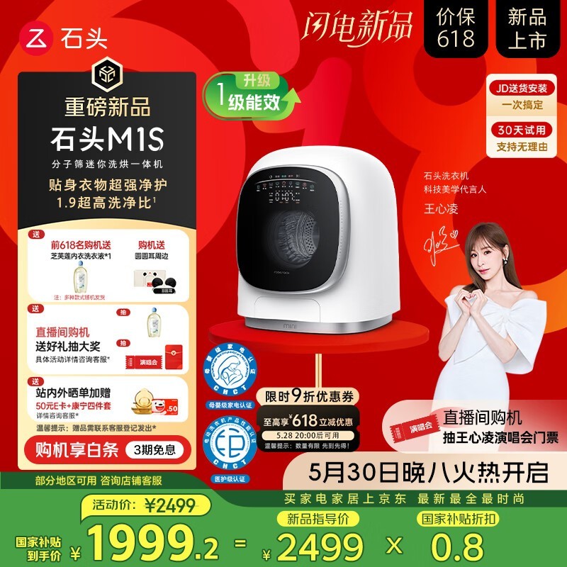 石头Roborock分子筛迷你洗烘一体机M1S限时优惠1651元