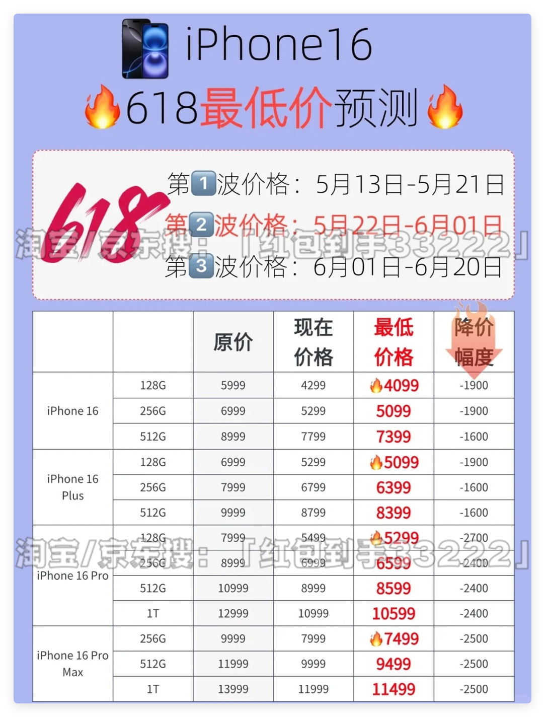 高潮期:6月16日20:00-6月18日(全年最低价+限时秒杀)