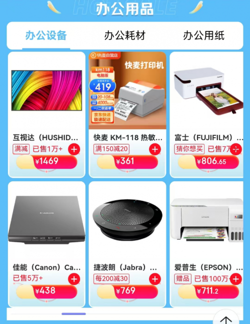 办公人群也能趁机升级设备,互视达43英寸广告机领西安消费券后下单立减100元,到手价1369元;快麦KM-118热敏标签打印机可享西安消费券立减20元优惠,到手价341元;富士PSC2D小俏印二代照片打印机领西安消费券后到手价899元,非常划算。