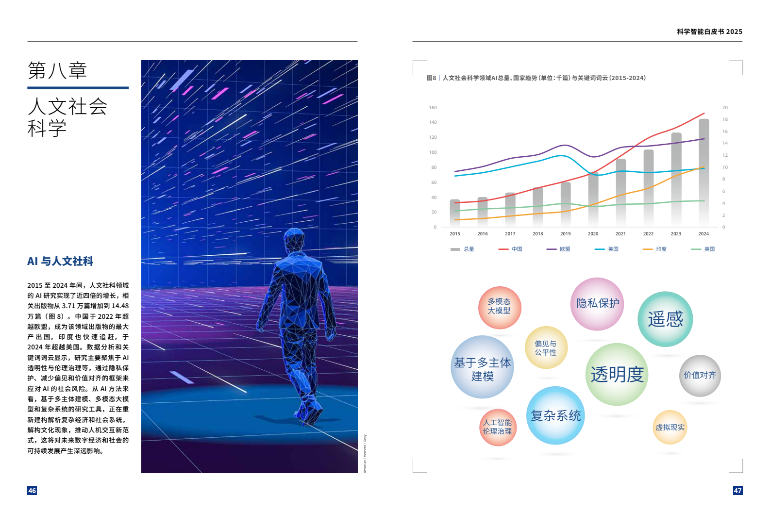 总之,人工智能可以有效整合不同学科的数据和知识,打破学科壁垒,促进多学科深度融合,解决学科的挑战性问题。跨学科合作不仅拓展了各学科的研究边界,还催生了计算生物学、量子机器学习、数字人文等新兴学科。