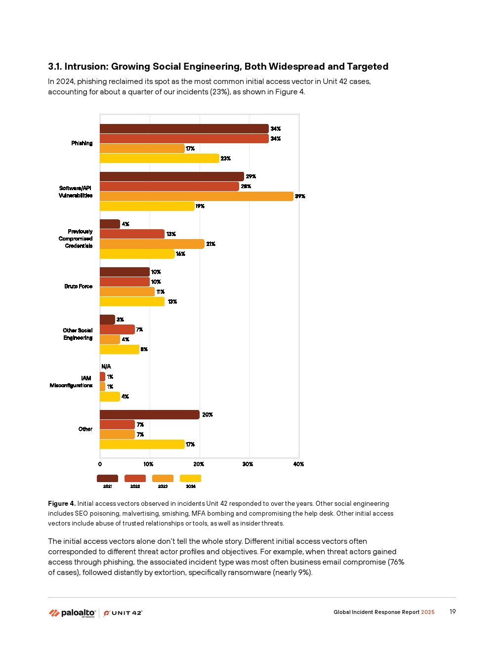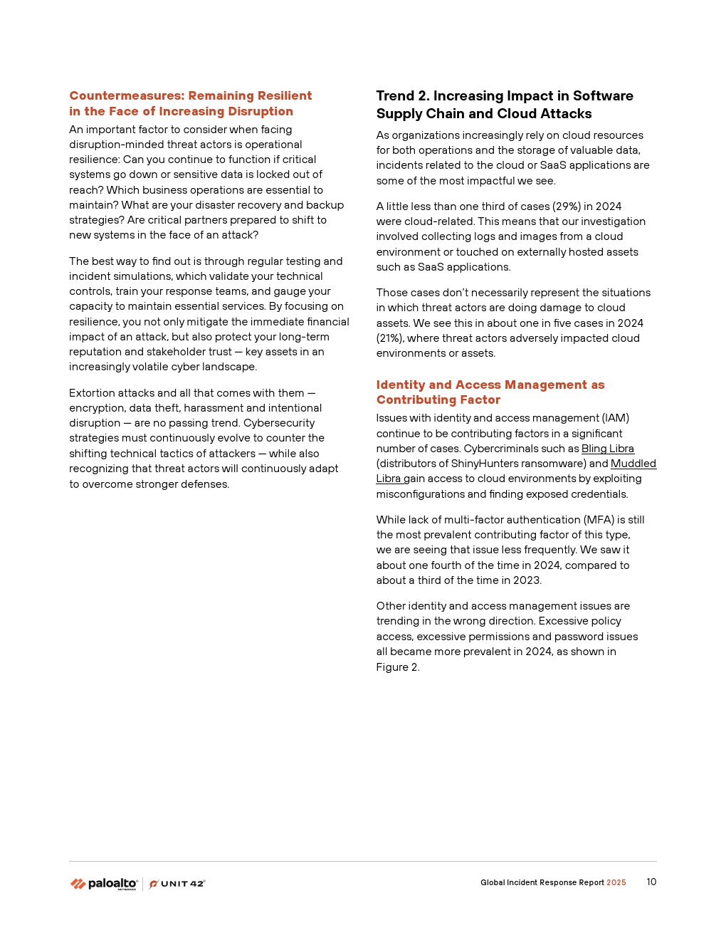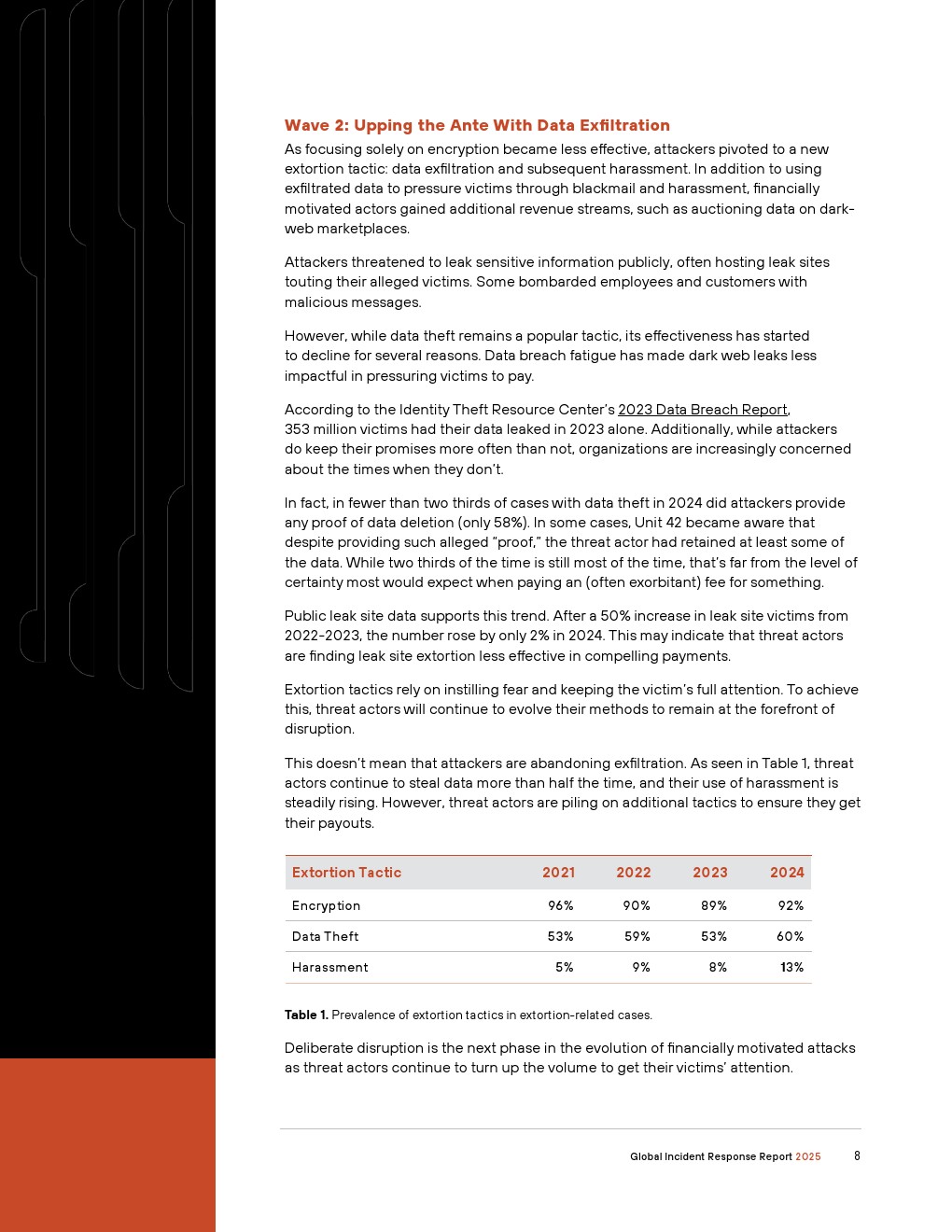 首先,威胁行为者正在通过故意破坏运营的攻击来增强传统的勒索软件和敲诈手段。2024年,Unit 42响应的事件中有86%涉及业务中断——包括运营停机、声誉损害或两者兼有。