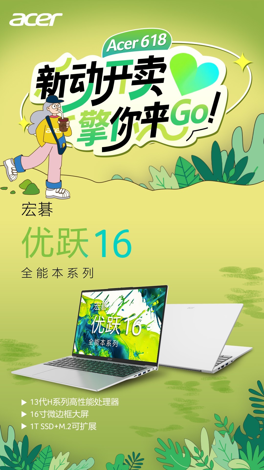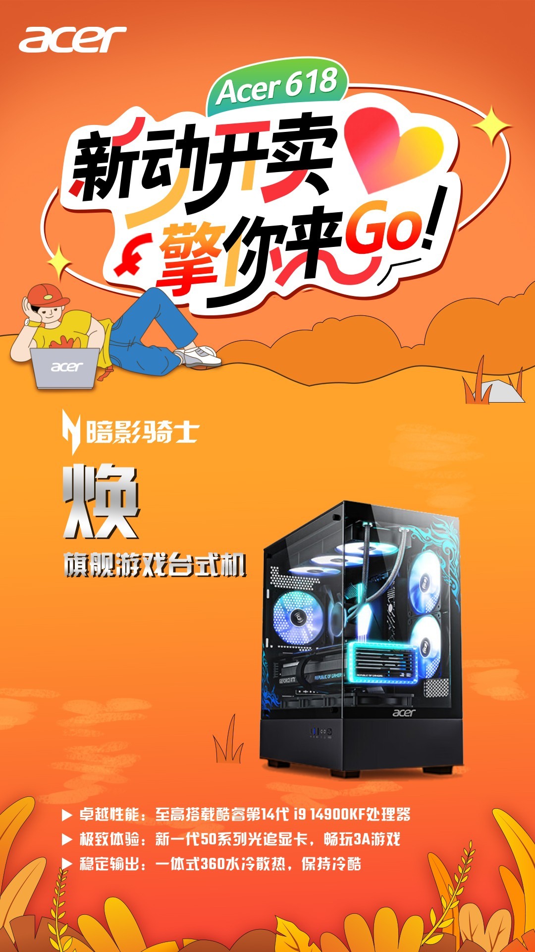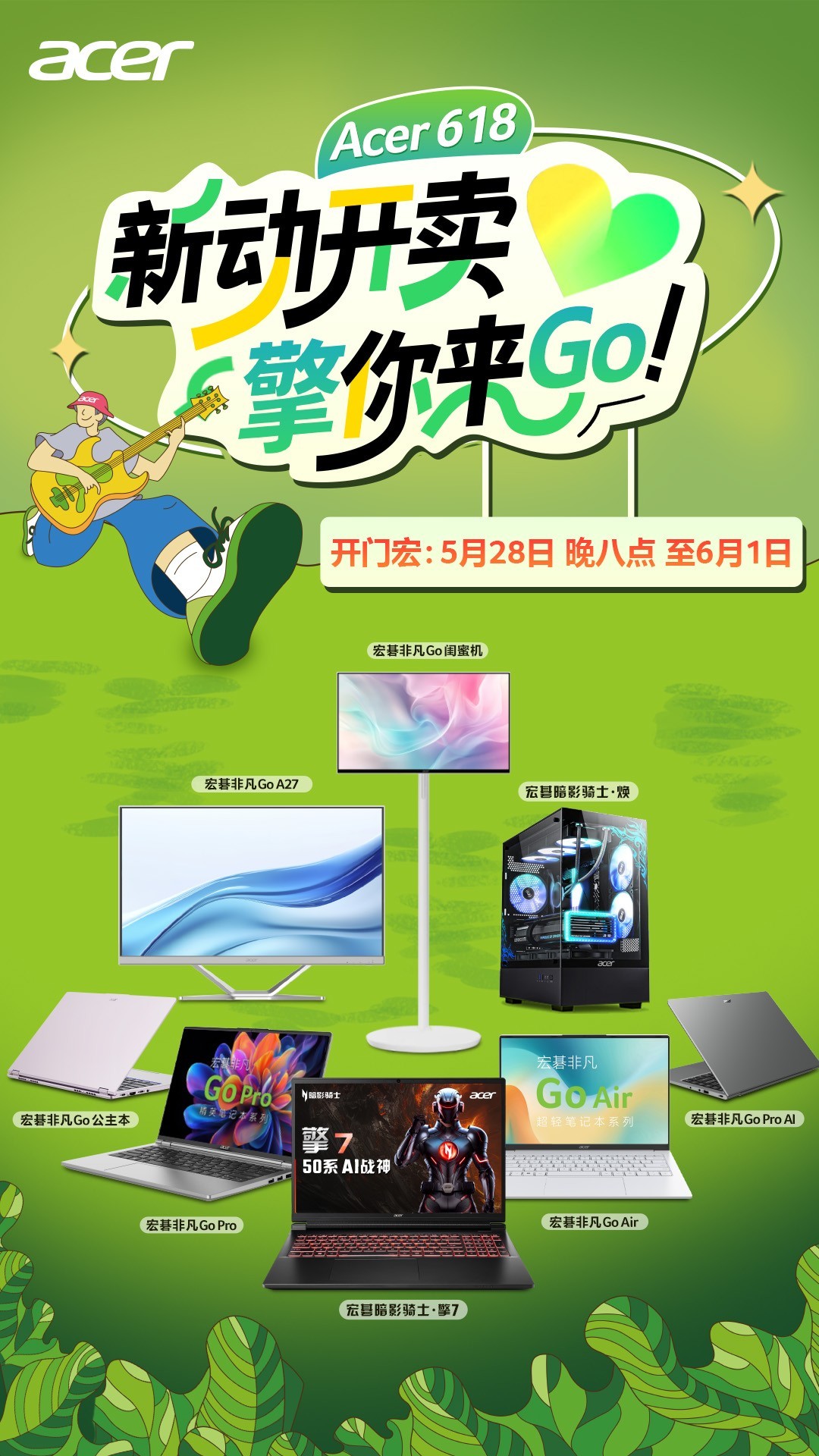 在今年618,宏碁以“新”动开卖、“擎”你来Go为主题,集结多款明星产品与前沿新品,通过真实让利、全场景覆盖,为用户带来一次性价比、体验感双在线的购机窗口。无论你是追求性能的游戏玩家,还是渴望轻盈便携的办公达人,或是需要稳定配置的家庭与商务人群,在此次“开门宏”活动中都能找到对应选择。