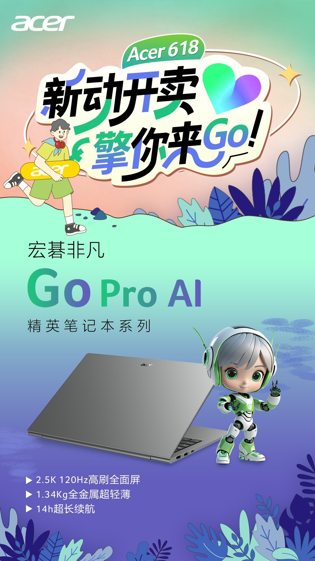 如果说过去选择轻薄本是“轻”与“强”二选一,那今年宏碁给出的答案是“全都要”。在本次618“开门宏”中,非凡GoPro AI、非凡GoAir、非凡GoPro、非凡Go公主本等多款轻薄新品悉数登场,为追求高效、便携与智能体验的用户带来更多选择。
