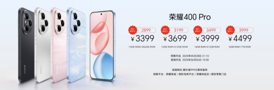 据了解,荣耀400系列共两个版本,分别为荣耀400与荣耀400 Pro,国补后起售价分别为2124.15元、2899元,目前已经开启预约,6月6日10:00全渠道正式开售。