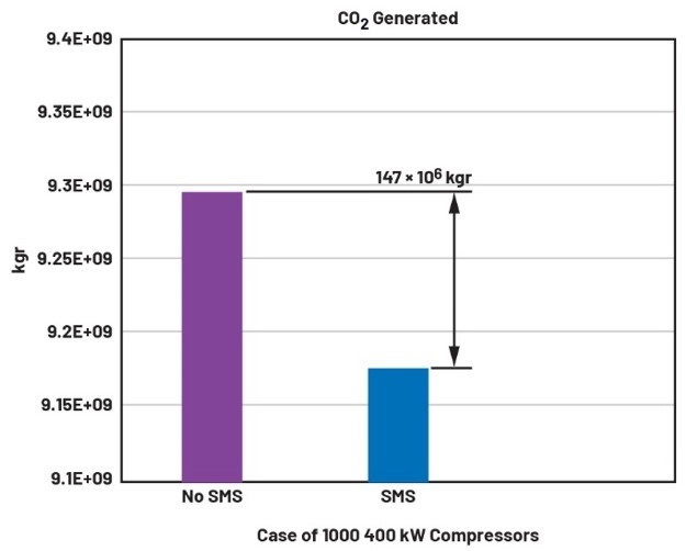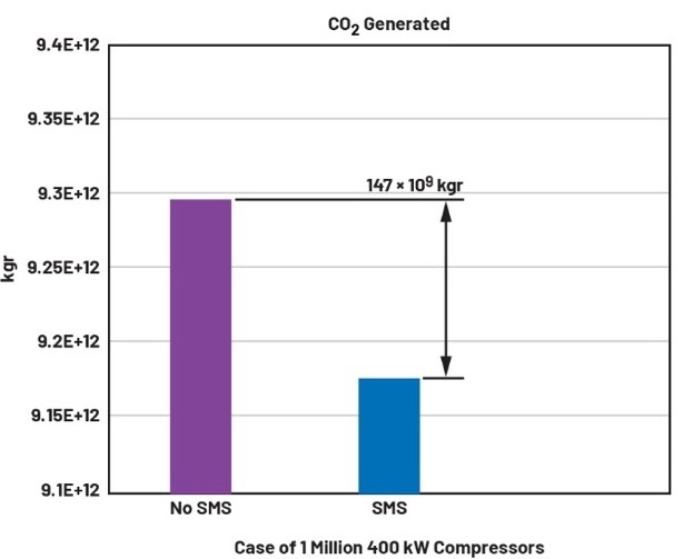 此前,在未安装OtoSense SMS的情况下,已观察到能耗和二氧化碳排放均有降低,幅度约为2%,等同于节省了约2%的生产成本。随着投入使用的压缩机数量增加,二氧化碳减排效果将愈发显著。例如,如果对100万台相同规格、功率为400 kW的压缩机进行监测,将使二氧化碳减排量达到约147×109 kgr。图8展示了使用OtoSense SMS解决方案所取得的成果。