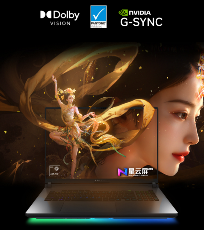 视觉体验上,ROG枪神9 Plus配备18英寸2.5K 240Hz 500nits ROG星云屏2.0,ROG超视技术加持,防反抗眩无惧环境光干扰,精准还原清河的晨昏光影与千佛谷的焦土细节。ROG星云屏2.0经逐台出厂校色,覆盖100% DCI-P3色域,具备潘通色彩认证,内置校色文件支持4种色域切换,可轻松应对设计、绘图、调色等创意工作,灵感即刻挥洒,游戏中亦能用惊艳色彩诠释穿越千年的恢弘意境。