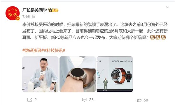 快科技5月30日消息,博主厂长是关同学透露,荣耀Magic V5将在6月底登场,新耳机、新平板、新PC等新品预计也会一同发布。