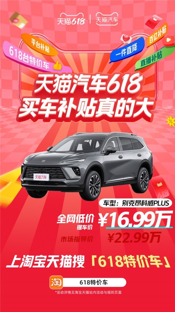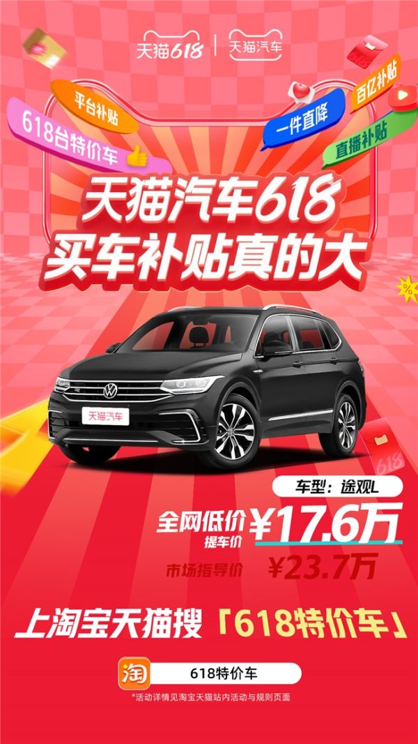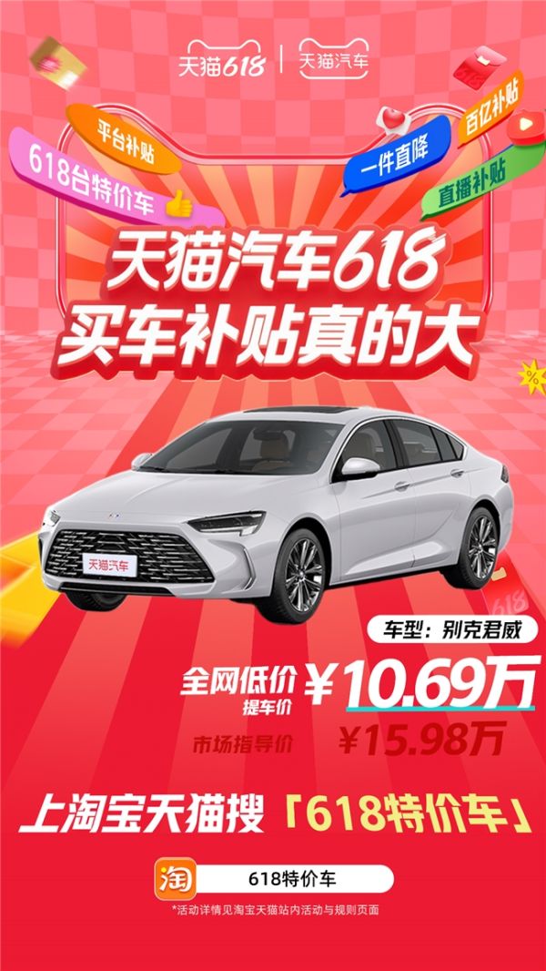 天猫汽车618,买车补贴真的大!搜索【618特价车】,618台特价车等你来抢!