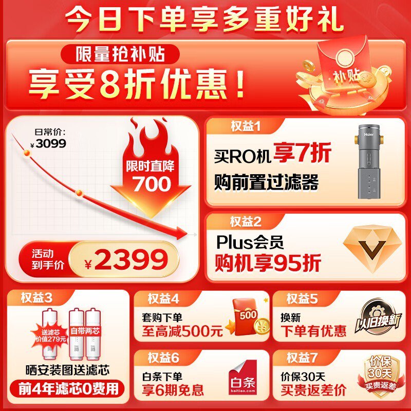 海尔HKC2400 - R791D2U1纯水机1000G京东优惠价1137元