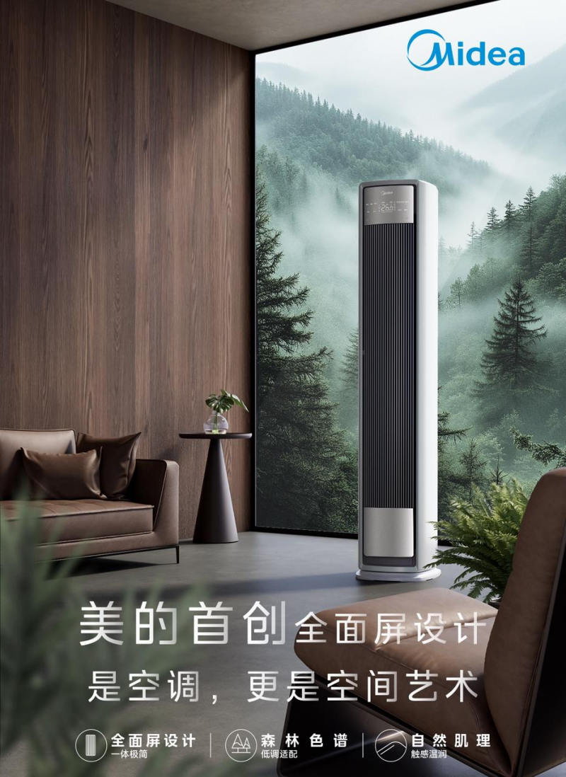 从全面屏的颠覆设计,到森林配色的自然美学,再到超跑级的匠心工艺,美的全面风空调直接把家电颜值和工艺卷出新高度,堪称空调界的设计“天花板”,放在客厅,岂止是“吸睛”,家居格调也瞬间提升。