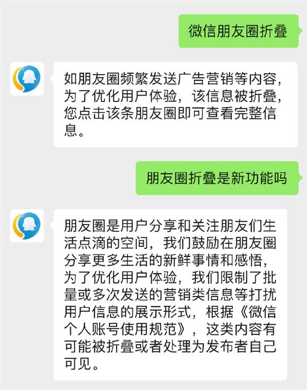 对于朋友圈的折叠功能,腾讯客服表示,如果朋友圈频繁发送广告营销等内容,为了优化用户体验,该信息将被折叠,用户点击该条朋友圈即可查看完整信息。