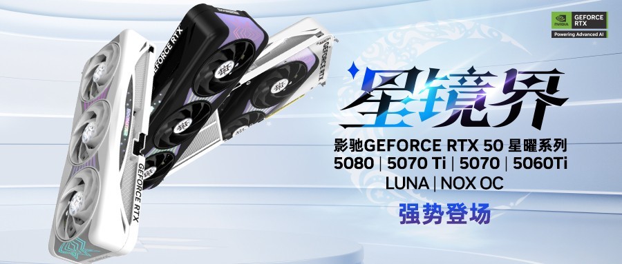 自NVIDIARTX 50系显卡发布以来,星曜显卡的消息一直备受大家关注,也有很多朋友追问星曜显卡的具体发售情况。那今天,影驰RTX 50系星曜显卡携全新镜界与澎湃性能强势登场!