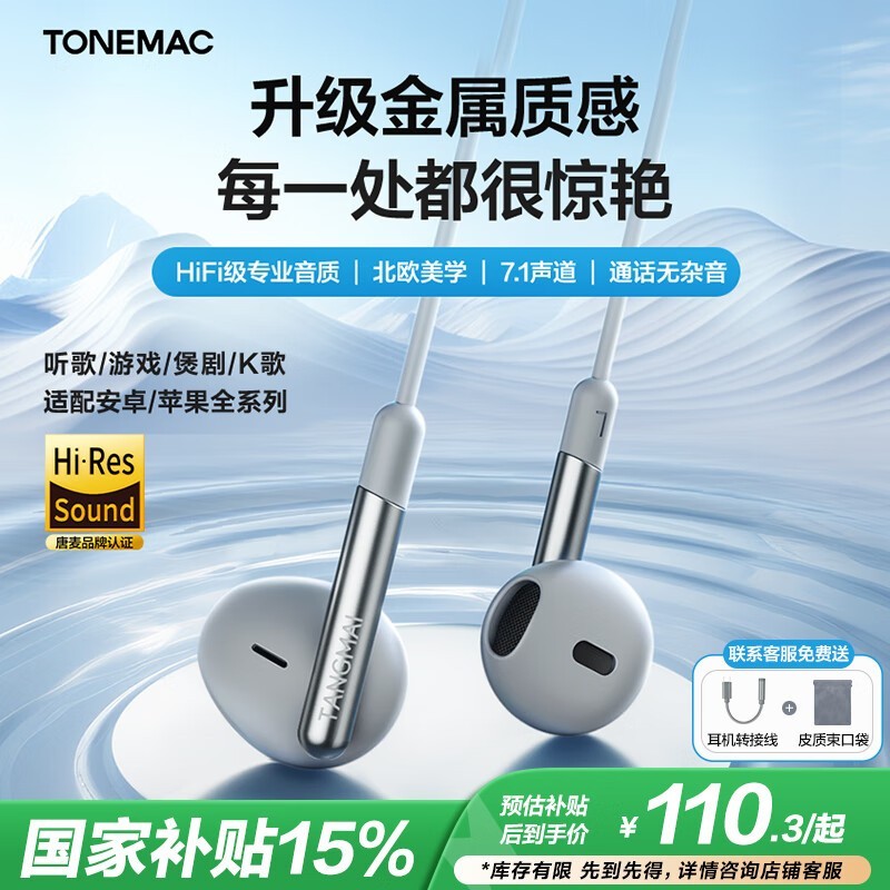 唐麦T5有线耳机京东优惠,到手106元