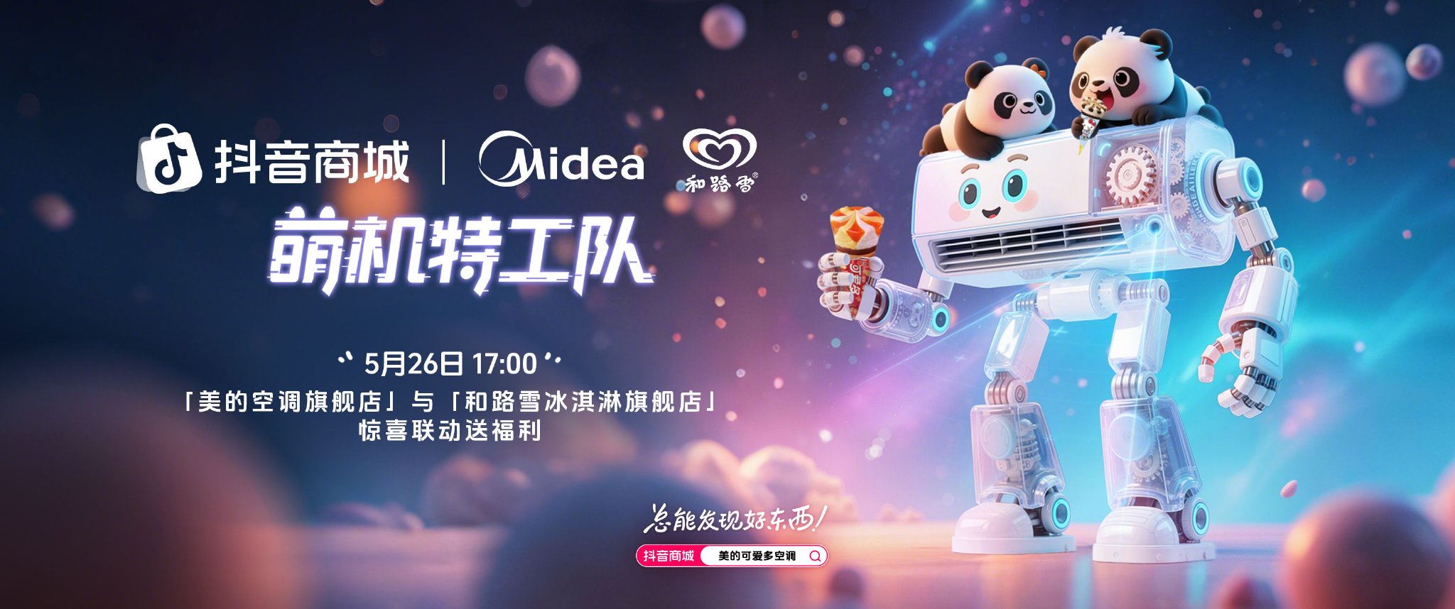 美的空调一向擅做萌趣内容。美的与和路雪冰淇淋搭CP,组成萌机特工队,渝可渝爱熊猫兄妹、小舞狮、鹦鹉、小狗毕仔来到直播间,当空调化身为可爱的机器人形象,与可爱CP带给消费者清凉夏日体验的同时,也给生活增添了多一份的乐趣。