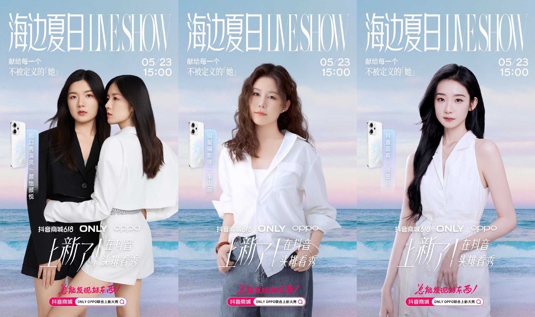 手机品牌OPPO和女装品牌ONLY联动,以山海为幕,踏浪而行,共同打造了一台走秀视觉盛宴。两大品牌找到了女性话题的契合点,找到脱口秀演员颜怡颜悦T台对谈,解读不被定义的女性生命力;时尚达人胡馨宇分享度假风人生Live照片直出指南;明星摄影师朱山尽、童解,公开海边大片的原图直出攻略。