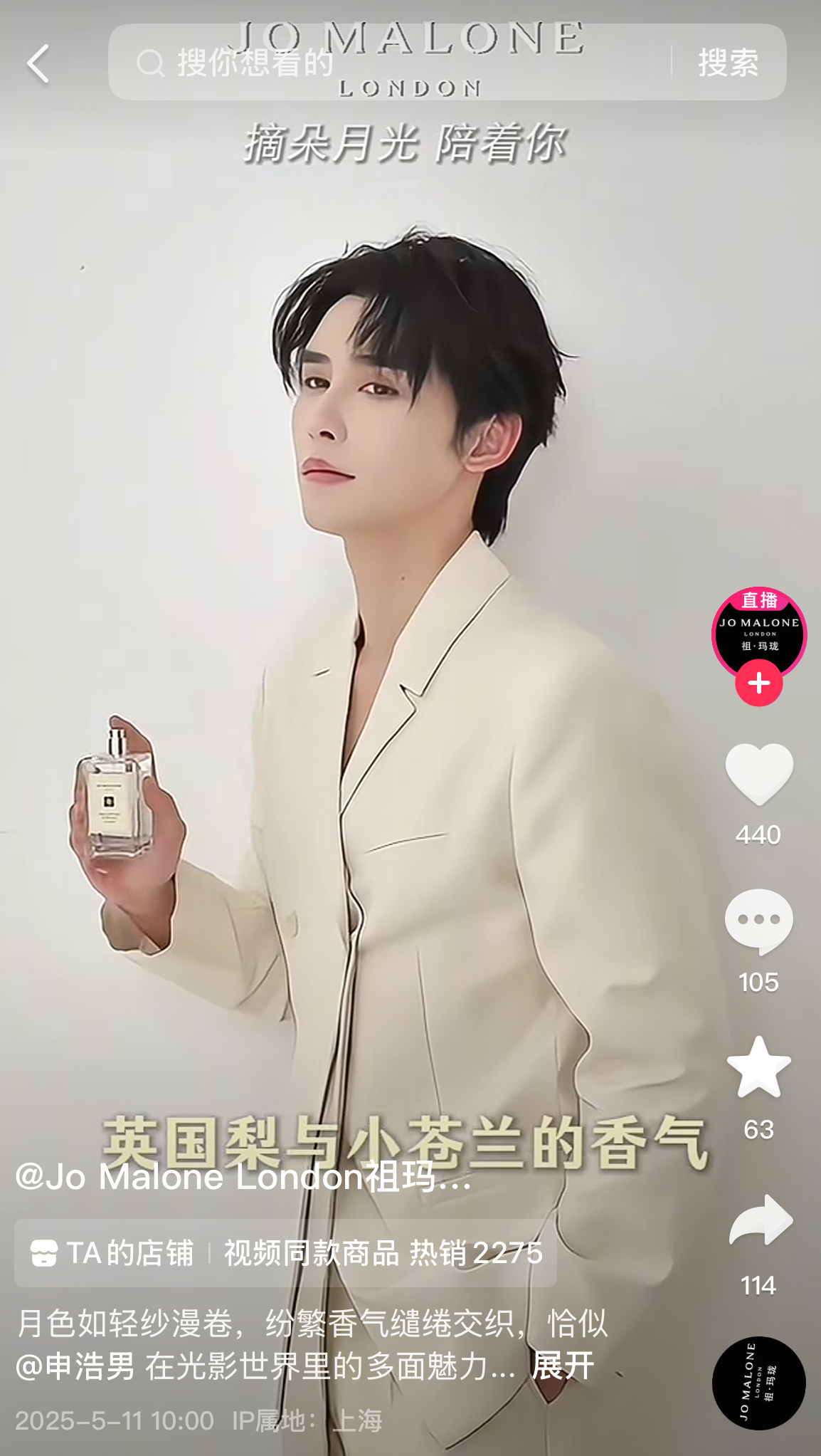 祖玛珑乘热门短剧风潮,用其品牌礼遇优势,耦合粉丝对“男神”和“理想爱情”的话题热度,与热门短剧“霸总”申浩男联动,“申总”化身月亮型恋人,热聊剧中角色和甜蜜爱情话题,在镜头前演绎互动游戏,为年轻人带来沉浸体验,展现与剧中角色的反差感,成为流量密码。据了解,该时段下520礼盒售罄、自然流增长2400%;当日直播内容用户访问提高500%,当日店播GMV暴涨600%,祖玛珑Jo Malone直播间登彩妆带货榜TOP2。