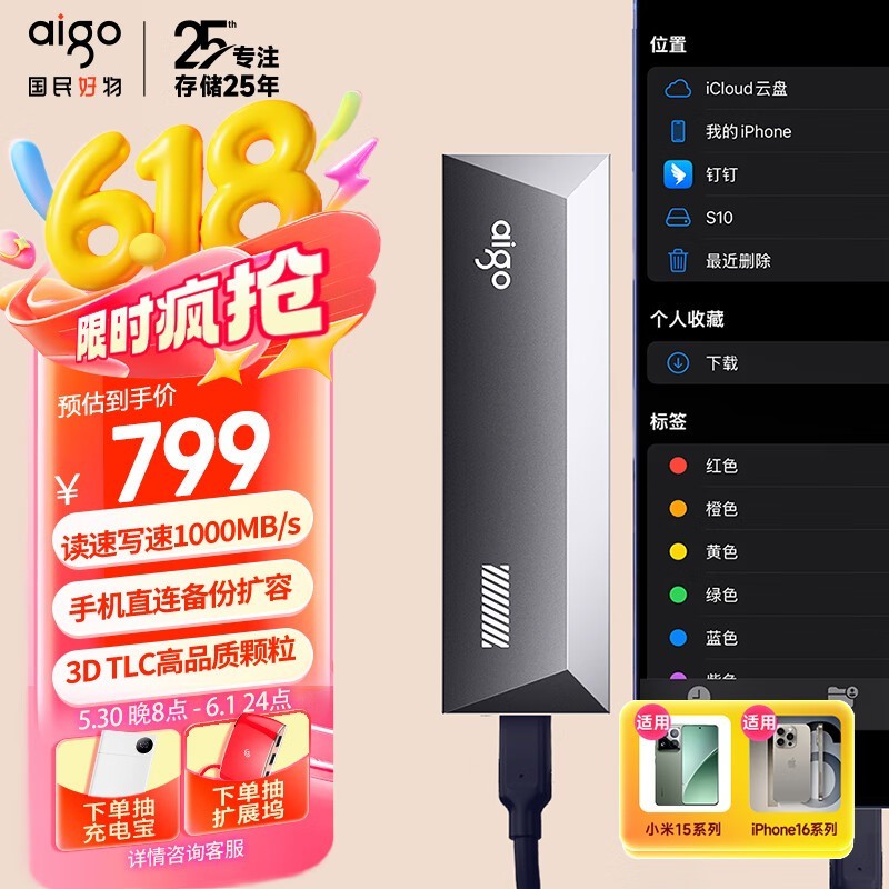 爱国者S10 2TB移动固态硬盘京东限时优惠