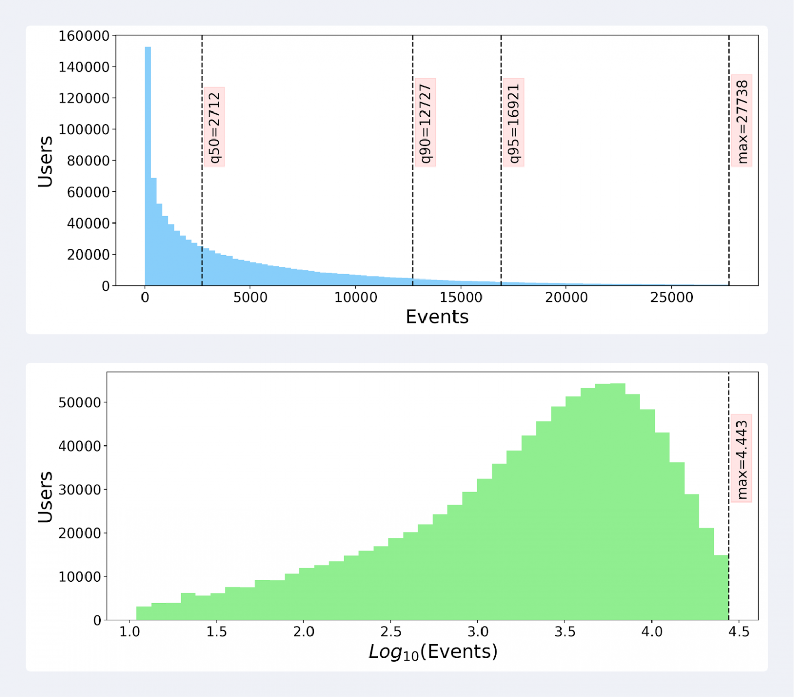 所有事件均带有时间戳,从而支持对用户行为的时序分析,使模型能够在更接近真实使用场景的条件下接受评估。