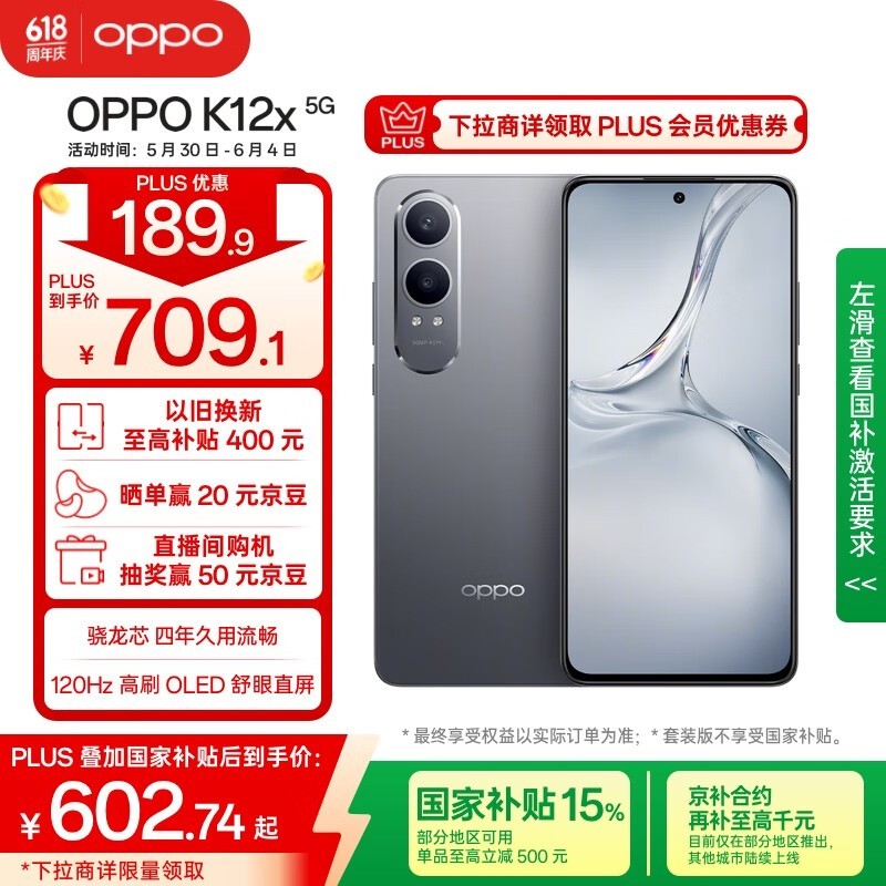 OPPO K12x 5G手机京东优惠,原价894元到手598元