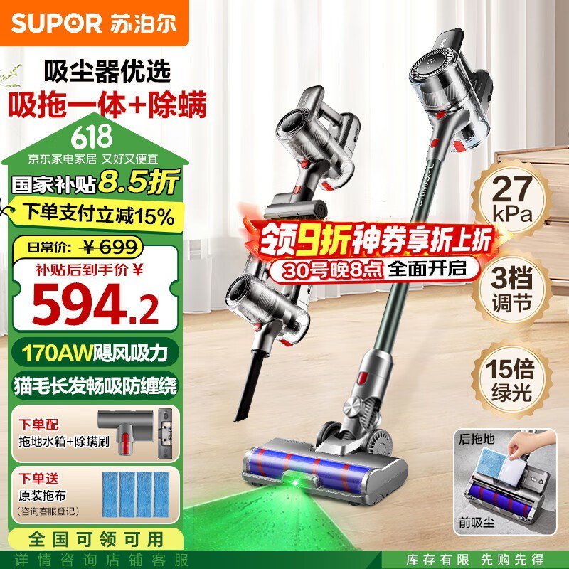 苏泊尔27kpa手持无线吸尘器京东优惠价566元