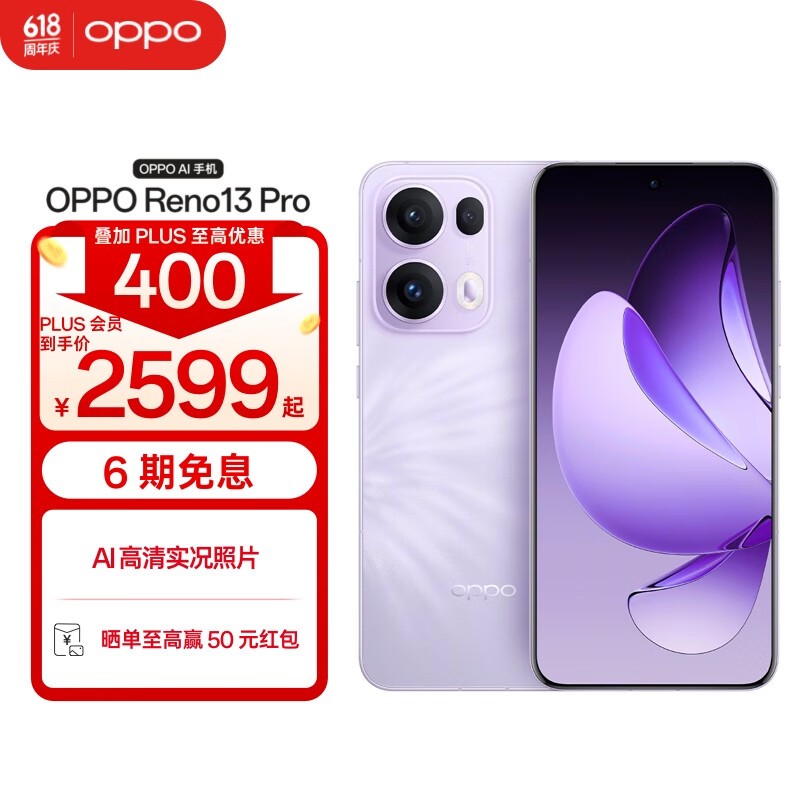 OPPO Reno13 Pro 5G手机蝶蝶紫限时特惠