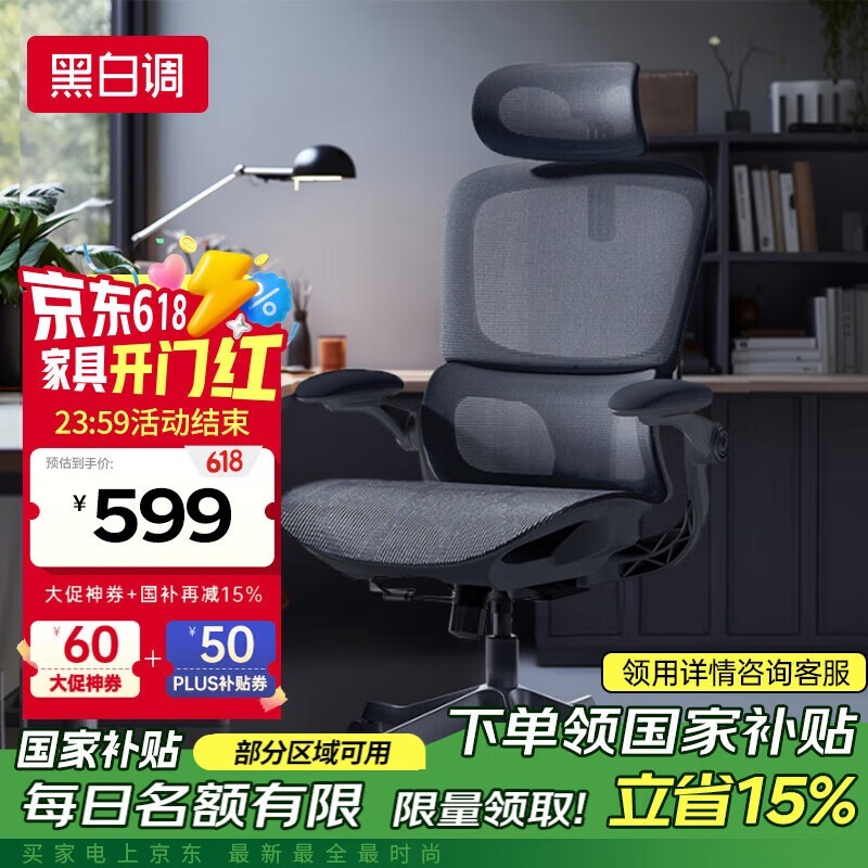 黑白调P2 Pro人体工学椅限时特惠431元