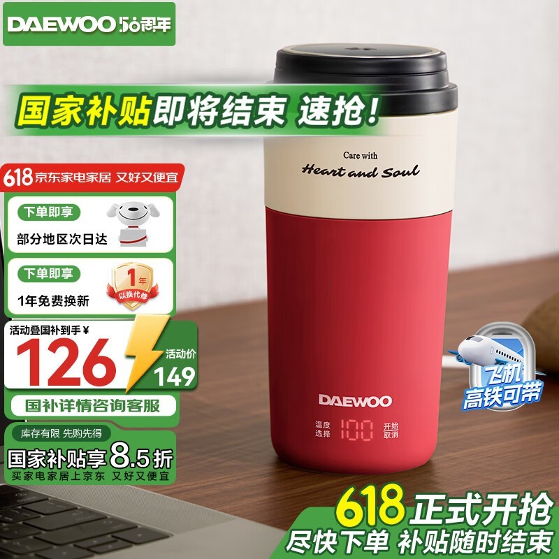 大宇D19复古红便携烧水壶限时特惠