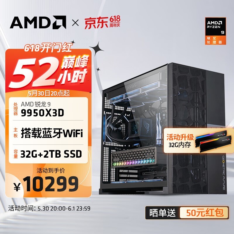 AMD锐龙9 9950X3D主机32G+2T促销价10299