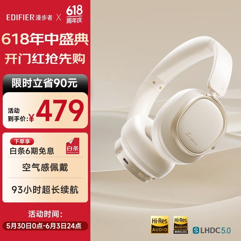 漫步者花再Evo Space头戴耳机贝母白,降噪舒适音效出众