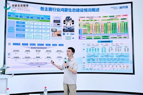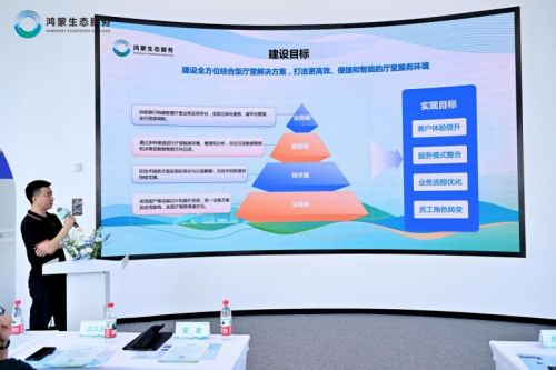 江苏润开鸿数字科技有限公司金融行业负责人费志明以“鸿蒙助力金融行业数字化转型”为主题,展示了鸿蒙操作系统赋能银行网点转型的案例。费志明介绍,该方案通过统一设备方案整合国产芯片与操作系统,支持弹性硬件组合,可快速适配智能柜员机、移动展业终端等多样化设备,硬件投资成本降低25%。同时,依托元服务框架实现卡片式交互与跨屏流转,一键调取客户画像、风险评估等功能,营销转化率提升18%。