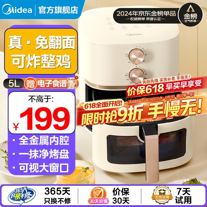 美的空气炸锅5L京东活动价133元