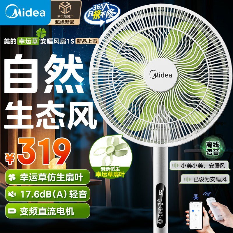 美的轻音立式声控风扇,大风量静音节能,京东特惠189元