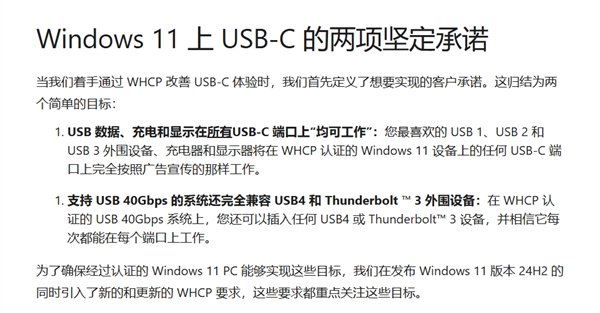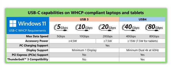 微软承诺,通过Windows 11 WHCP( Windows 硬件兼容性计划)新规,终结USB-C接口混乱的情况。