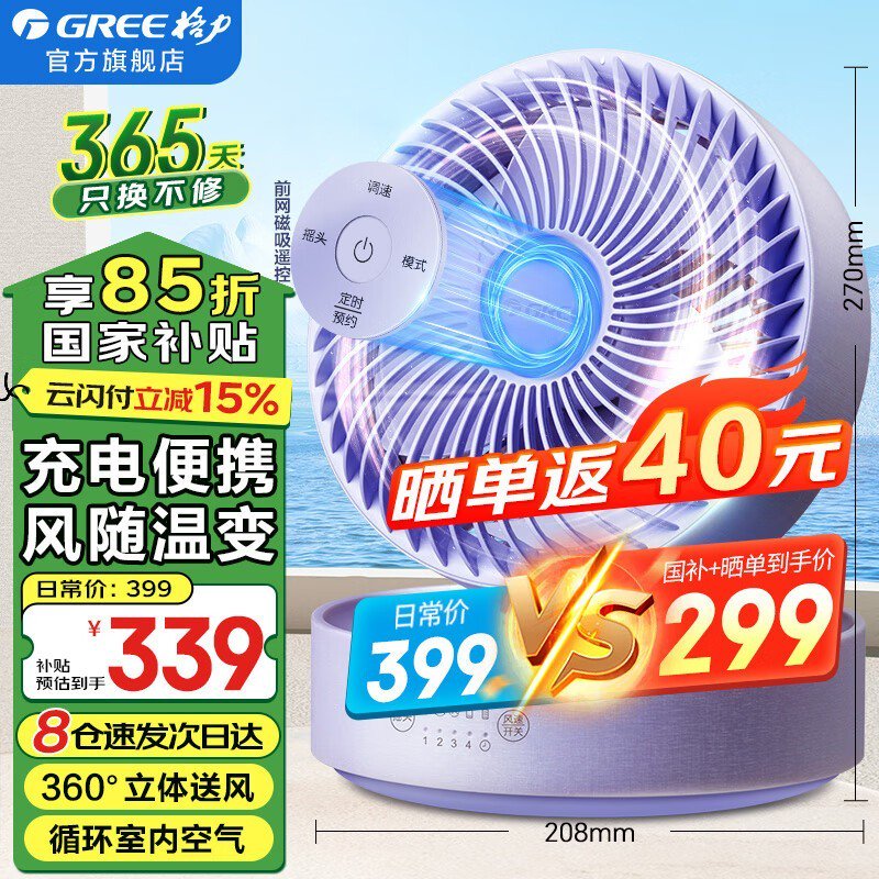 格力台式空气循环扇,智能折叠,332元可入手