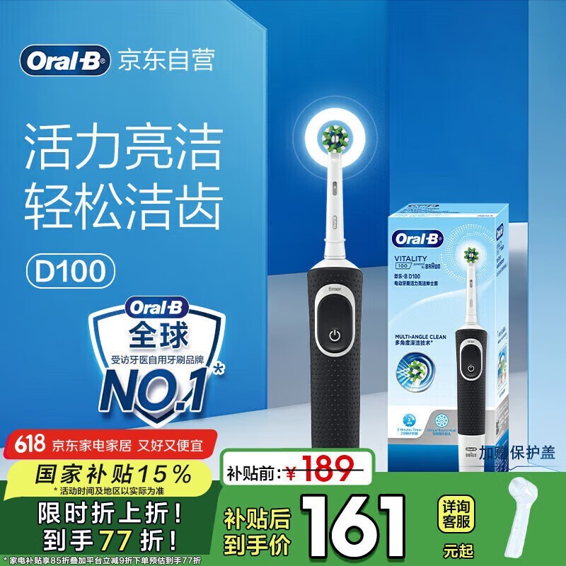 欧乐B D100电动牙刷限时特惠,仅需144元!