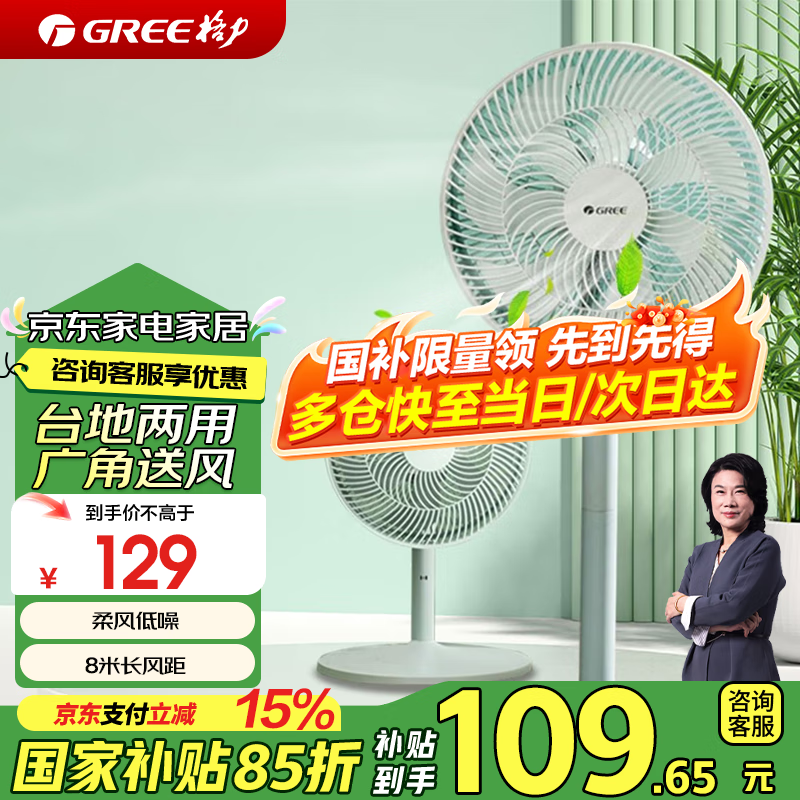 格力FS-3015h7落地扇竹青色,清凉强劲价90.65元
