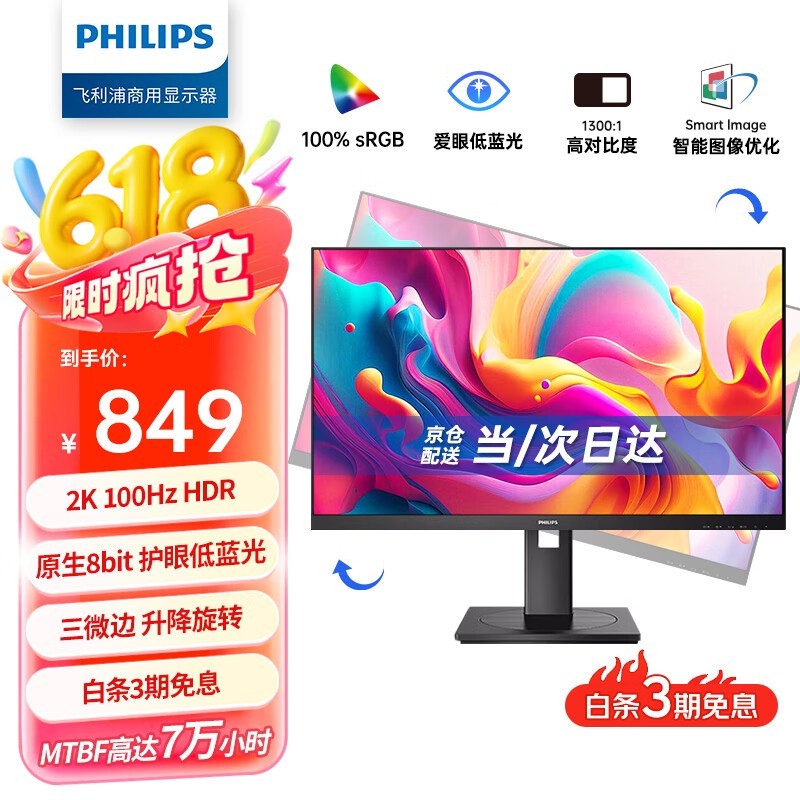 飞利浦23英寸办公显示器京东优惠价721元
