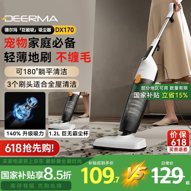 德尔玛DX170吸尘器京东优惠,到手98.69元